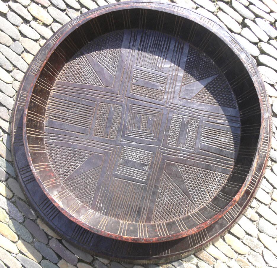 großes Tablett aus einem Holz, alt, Gurage, Durchmesser oben 60,4cm, Höhe 10,5cm, für das Fastengericht