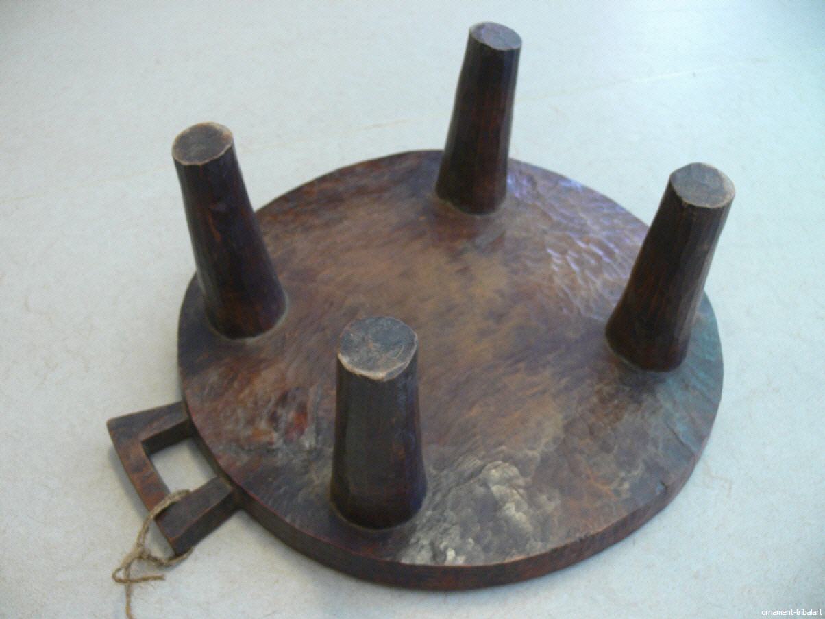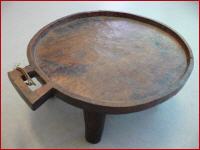 alter Kaffeetisch, aus einem Holz geschnitzt, Stamm Gurage, Durchmesser 42,5cm ohne Griff, Höhe 19,5cm, 1 Bein etwas verkürzt