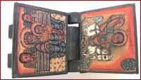 geschnitzt aus einem Holz, 2 Gemälde, Mineralfarben, zusammenklappbar, ca.1960, aufgeklappt Höhe 24,5cm ,Breite 45,5 cm , Tiefe 15,8 cm