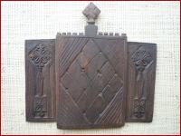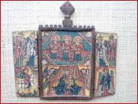 2 Türen Ikone , geschlossen 13,7 cm auf 25,4 cm ,Türen je 6,7cm auf 16,8cm , Mineralfarben , sechziger Jahre