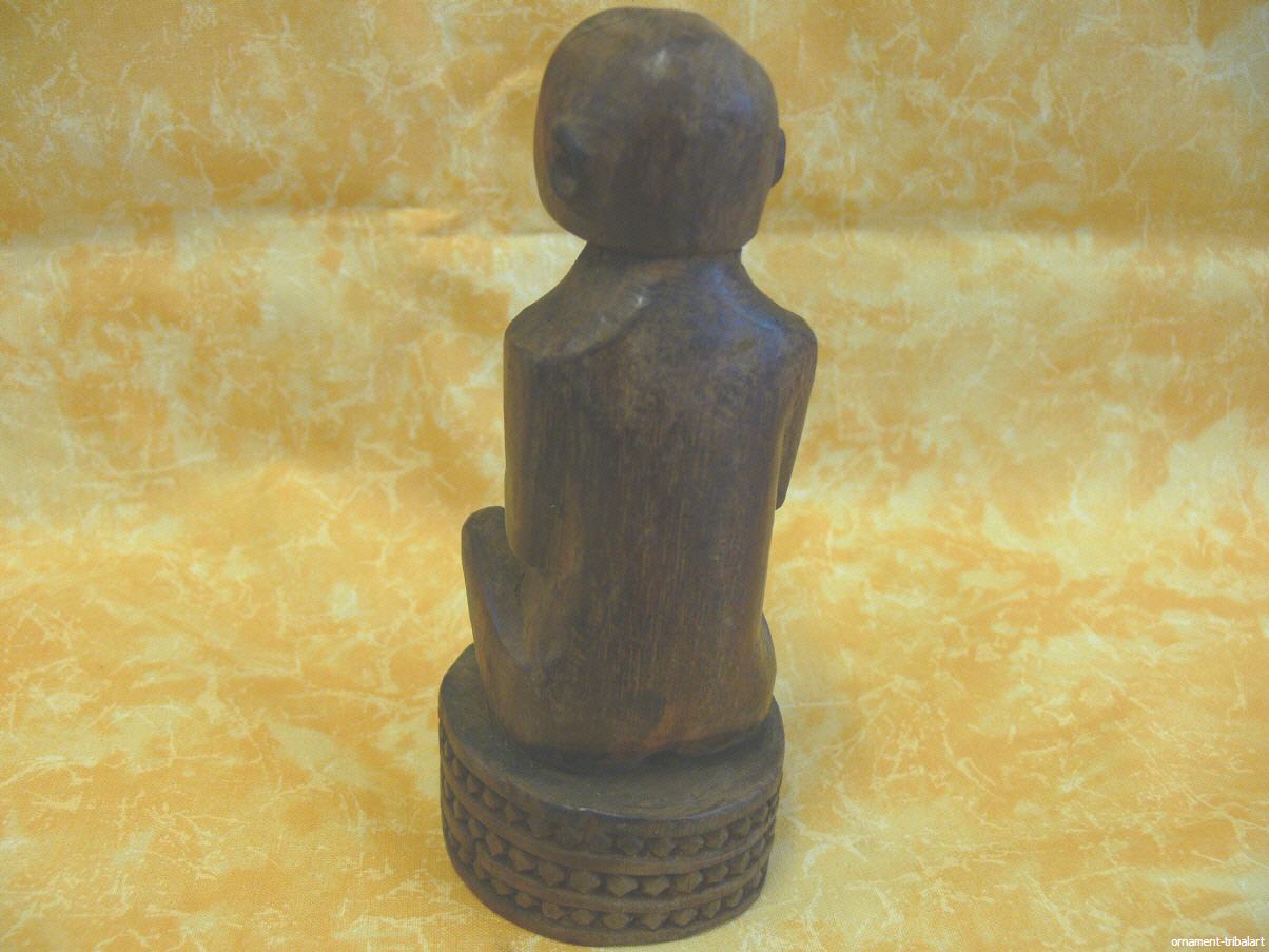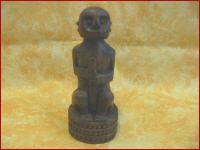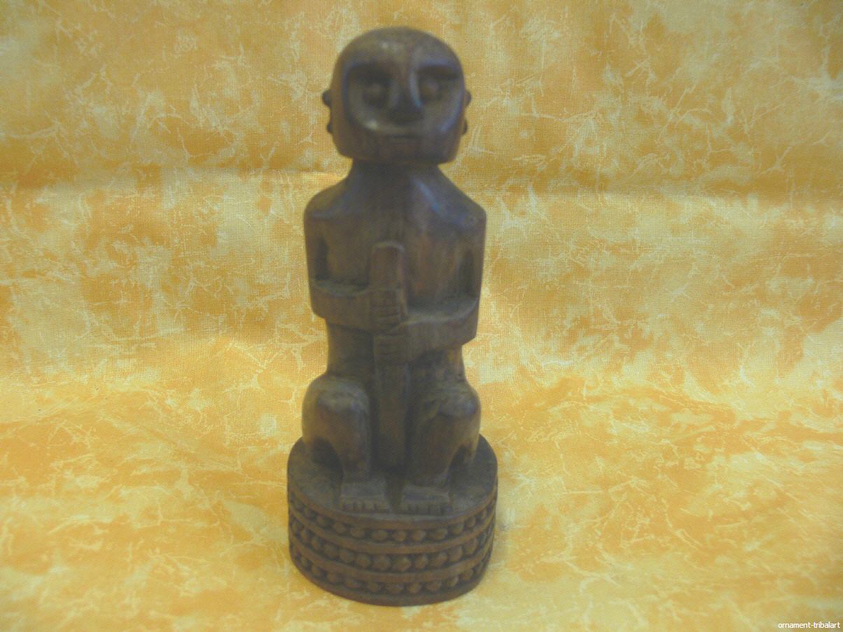 sitzende, volkstümliche Figur mit Stock, Sumba, 13,5cm hoch, Durchmesser am Sockel 6cm