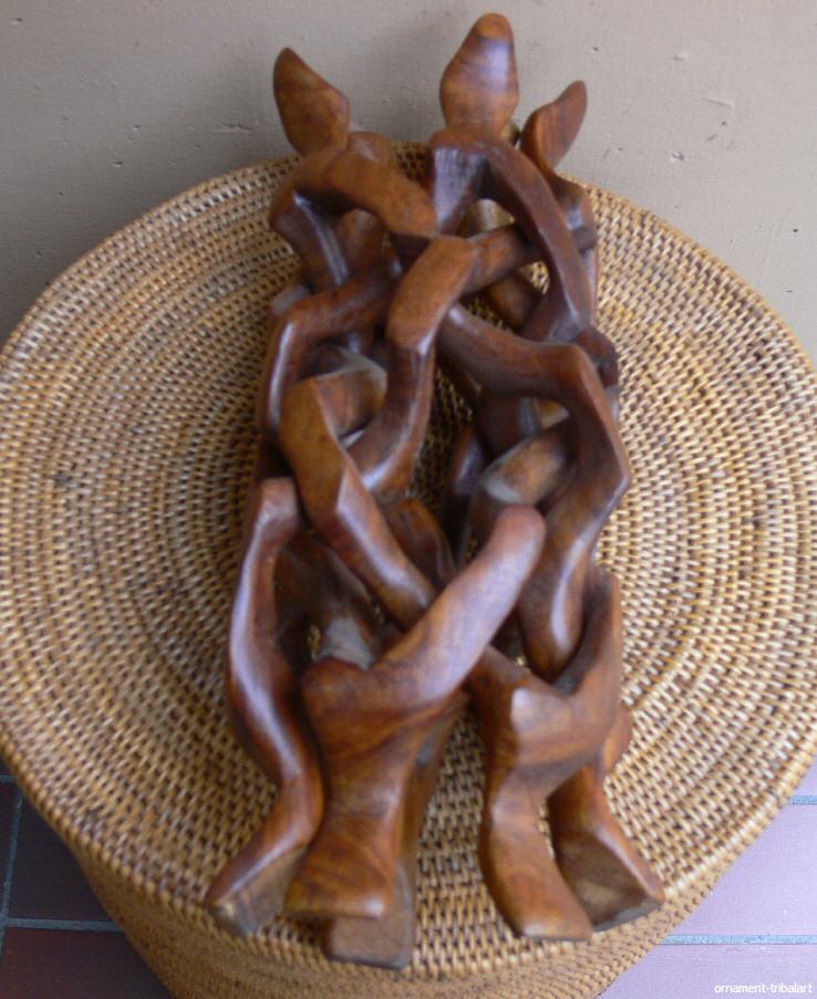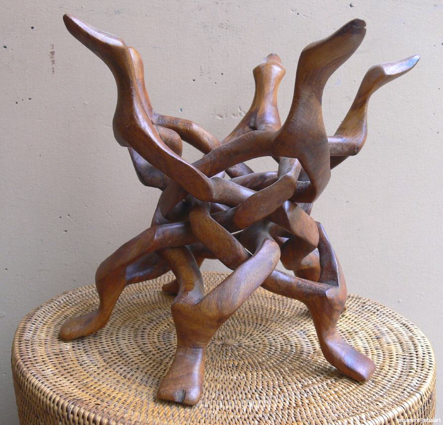 noch mit den ursprünglichen Schlangenköpfen(Schlangen knäuel), aus einem Holz geschnitzt, zusammenklappbar, 5 Köpfe u. Füße