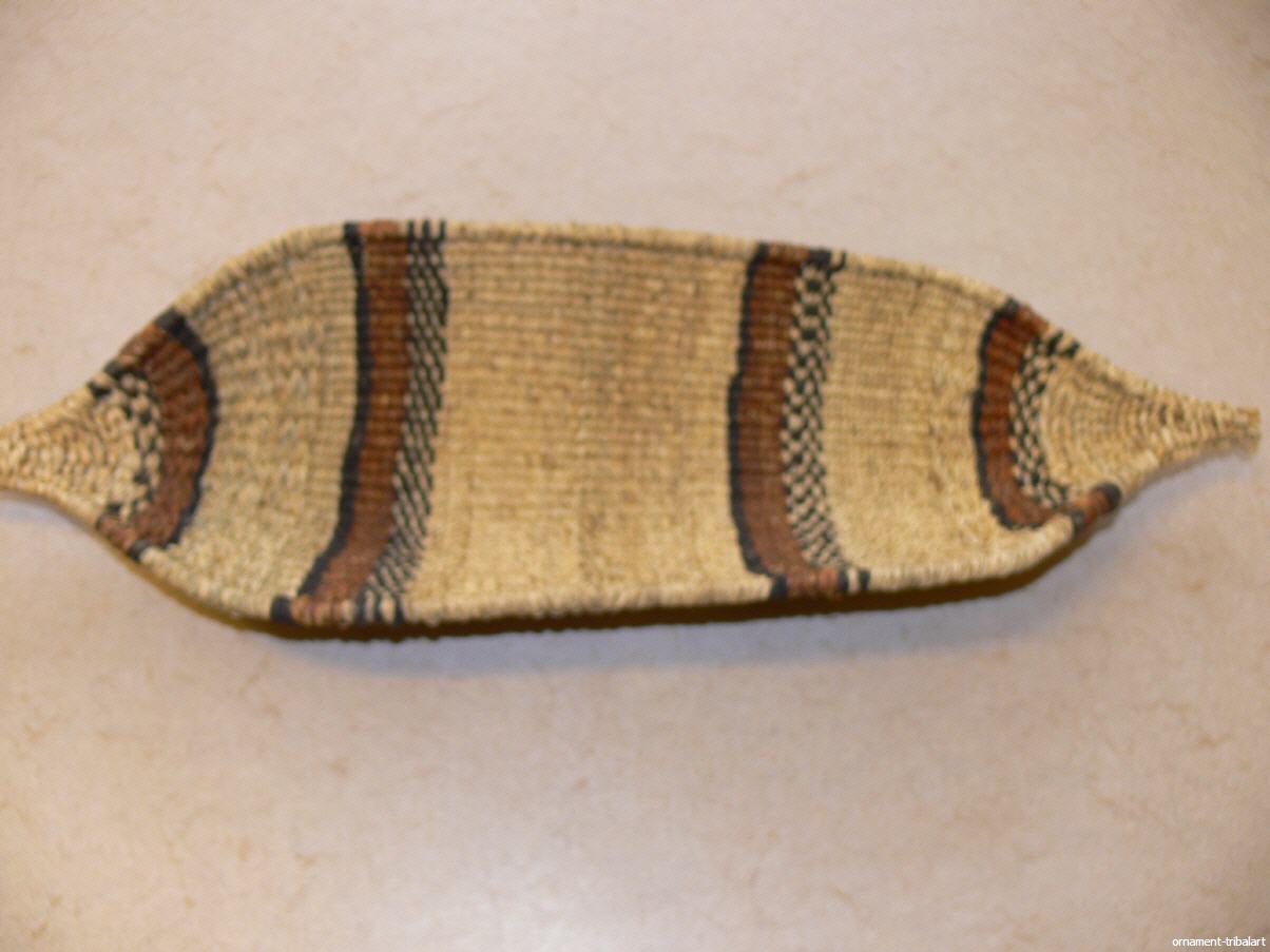 Grasflechtung auf Holzzweige, Gambela, Worfelkorb, Länge 56cm, Höhe ca. 6cm, Breite ca.18cm