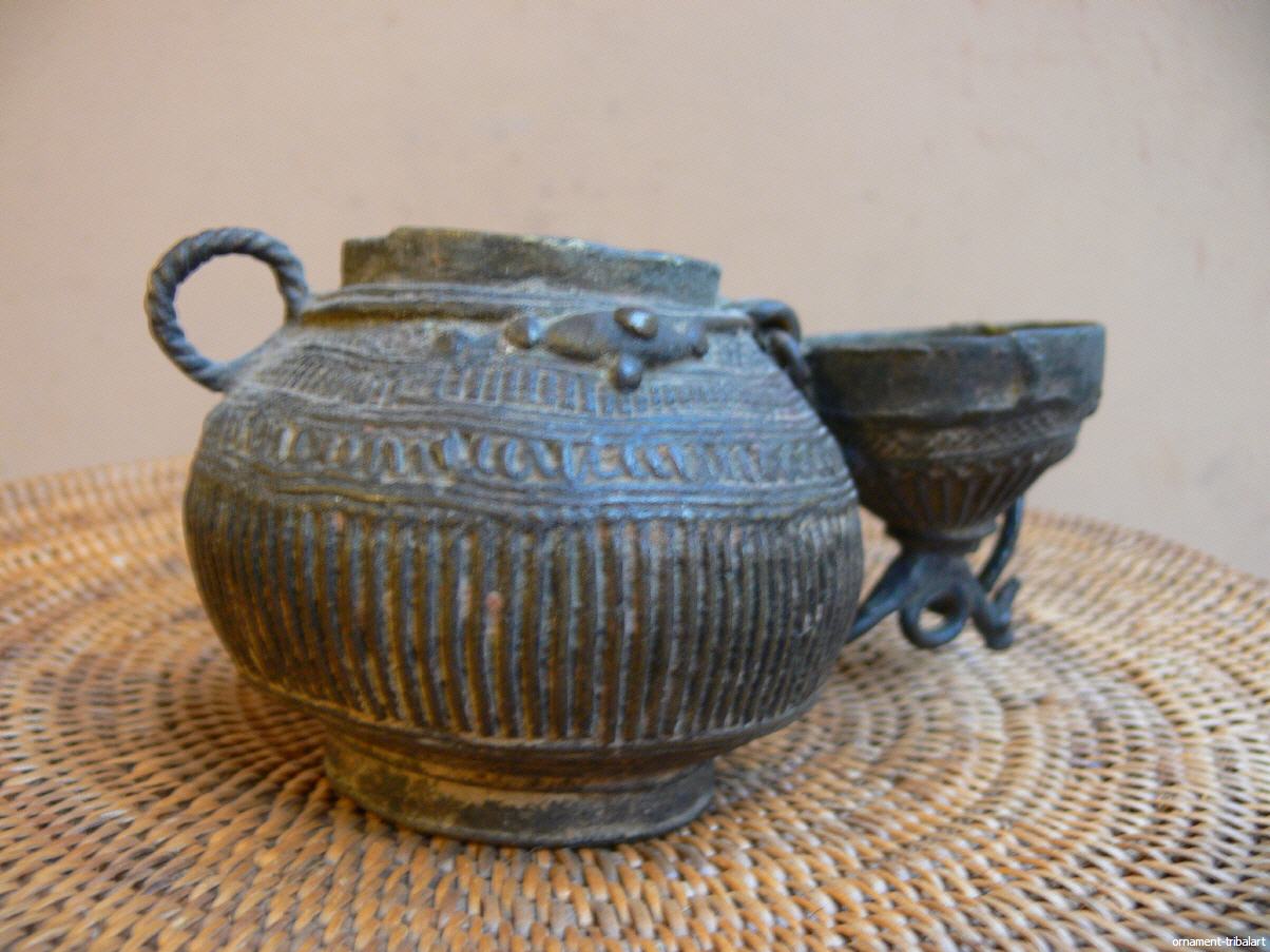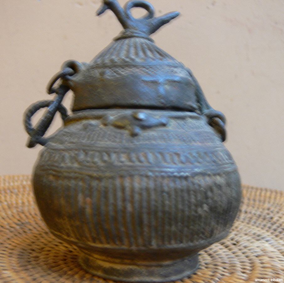 aus Orissa, alt, verlorene Form, zum Aufbewahren von Prezisionen, Höhe 12,5cm, Durchmesser 9cm