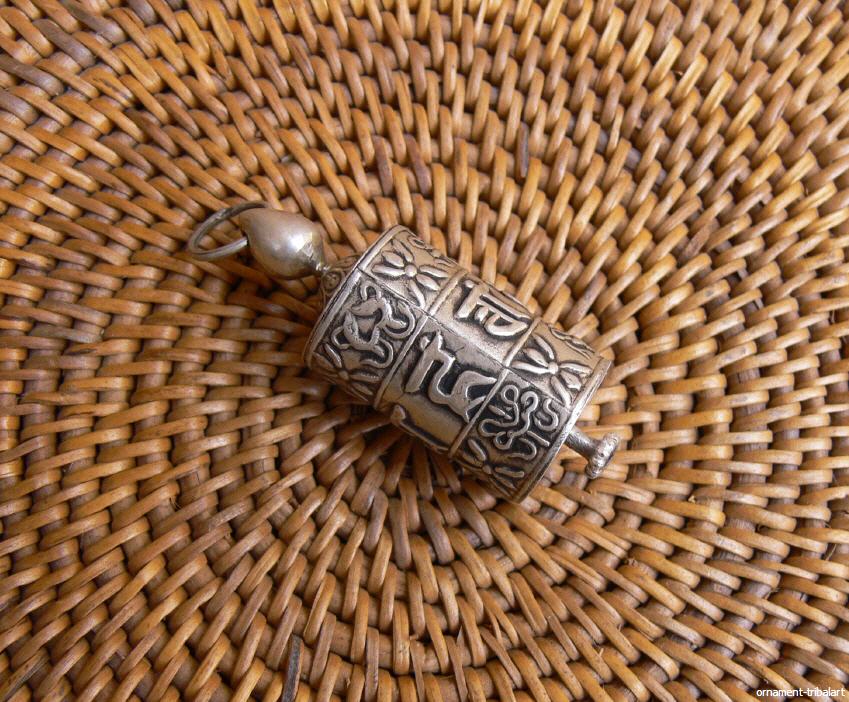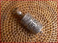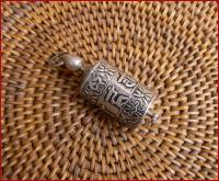aus Silber, mit Gebetsvers u. Glückszeichen, drehbar, als Anhänger Höhe 4,5cm, Durchmesser 1,7cm