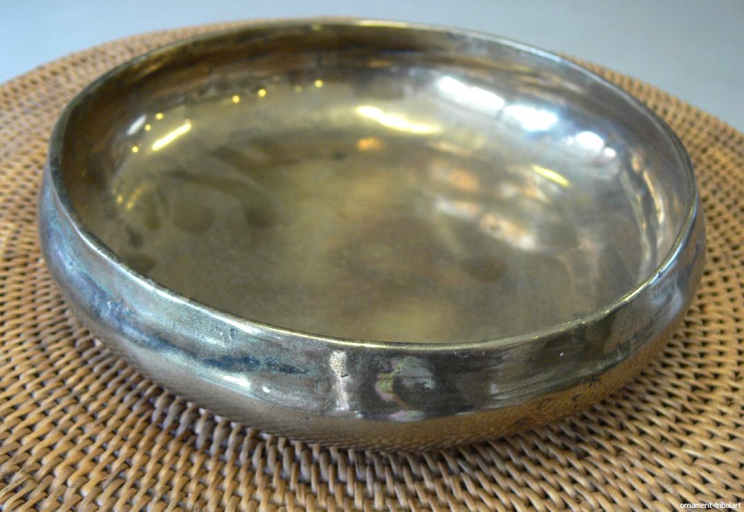 auch Opferschale der Hindus Pakistans, alt , Gelbmetall, aufpoliert, Höhe 4cm, Durchmesser 16,5cm