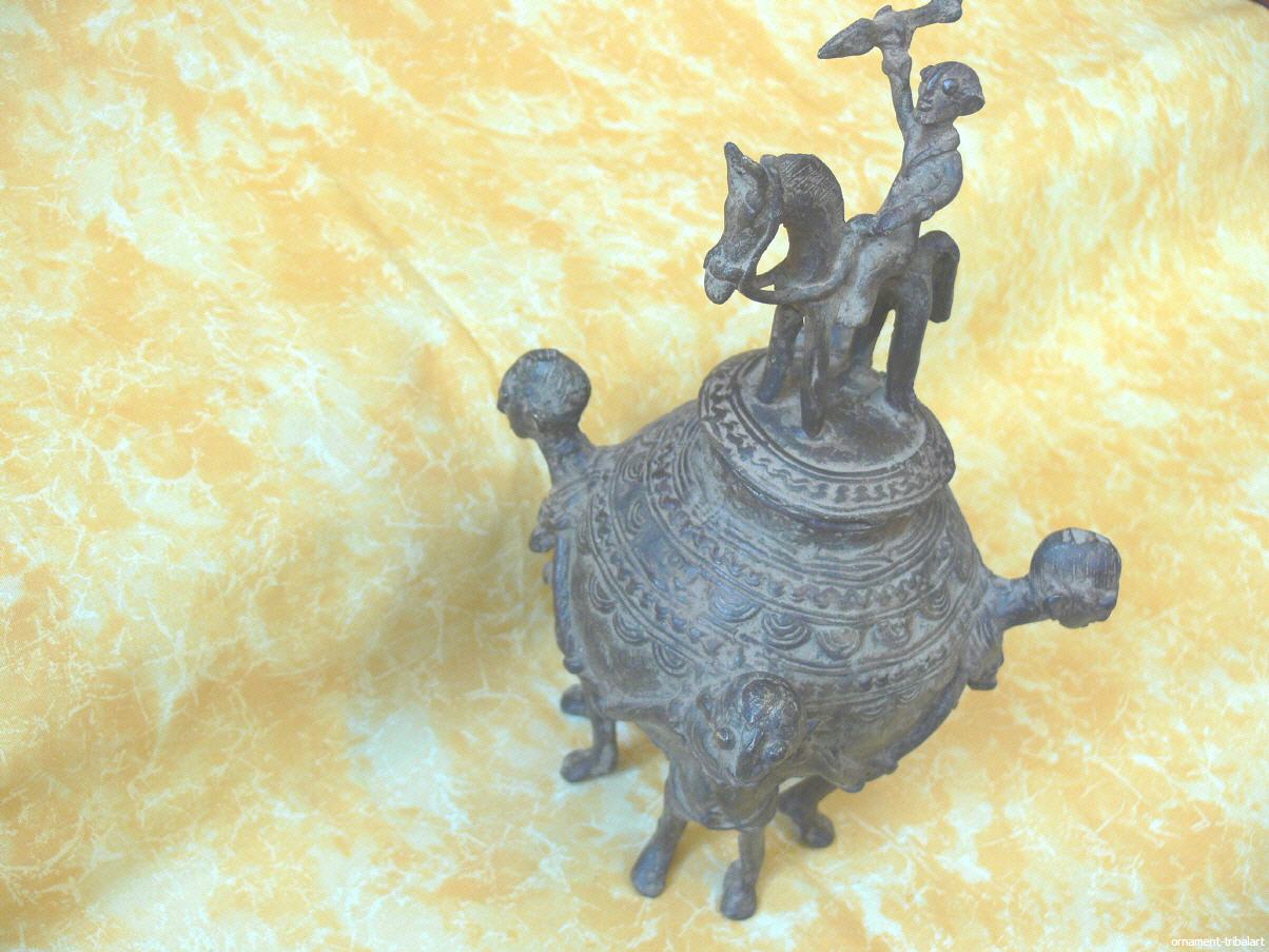 Gelbgussarbeit, verlorene Form, Ritualtrog, 2teilig, Höhe 27cm, Durchmesser ca. 17,5cm