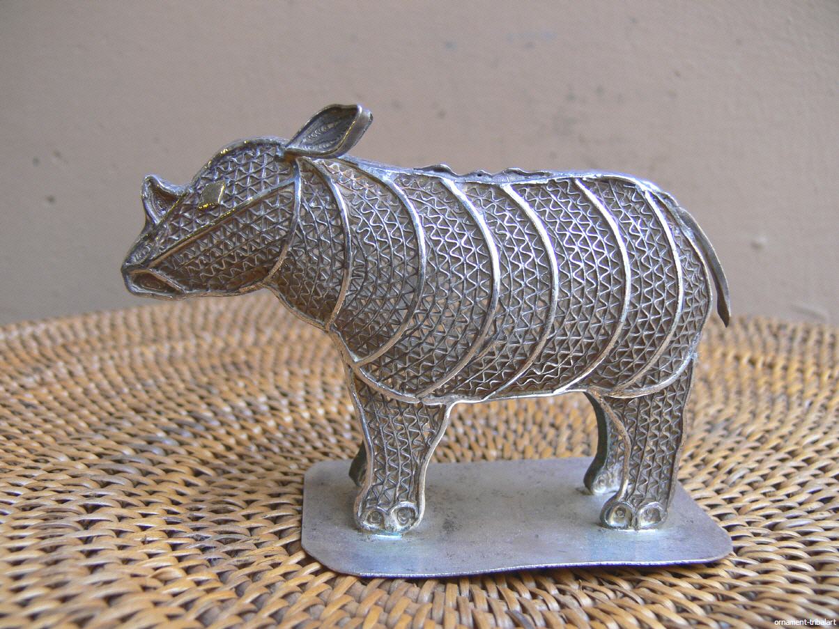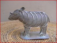 aus Orissa, Nashorn, Silber, Filigranarbeit, Höhe 6cm, Länge 9,5cm, Tiefe 4cm