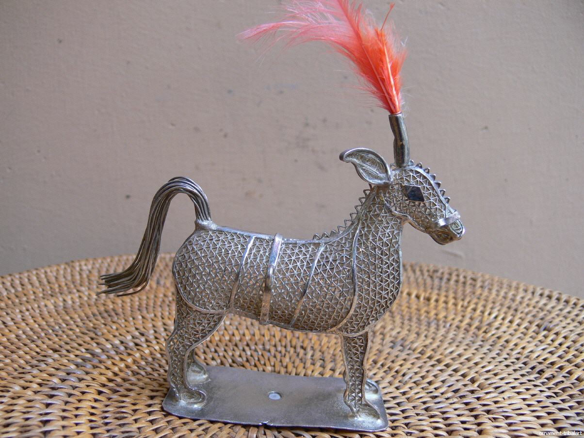 aus Orissa, Maultier, Silber, Filigranarbeit, Höhe 8cm, Länge 10cm, Tiefe 2,7cm