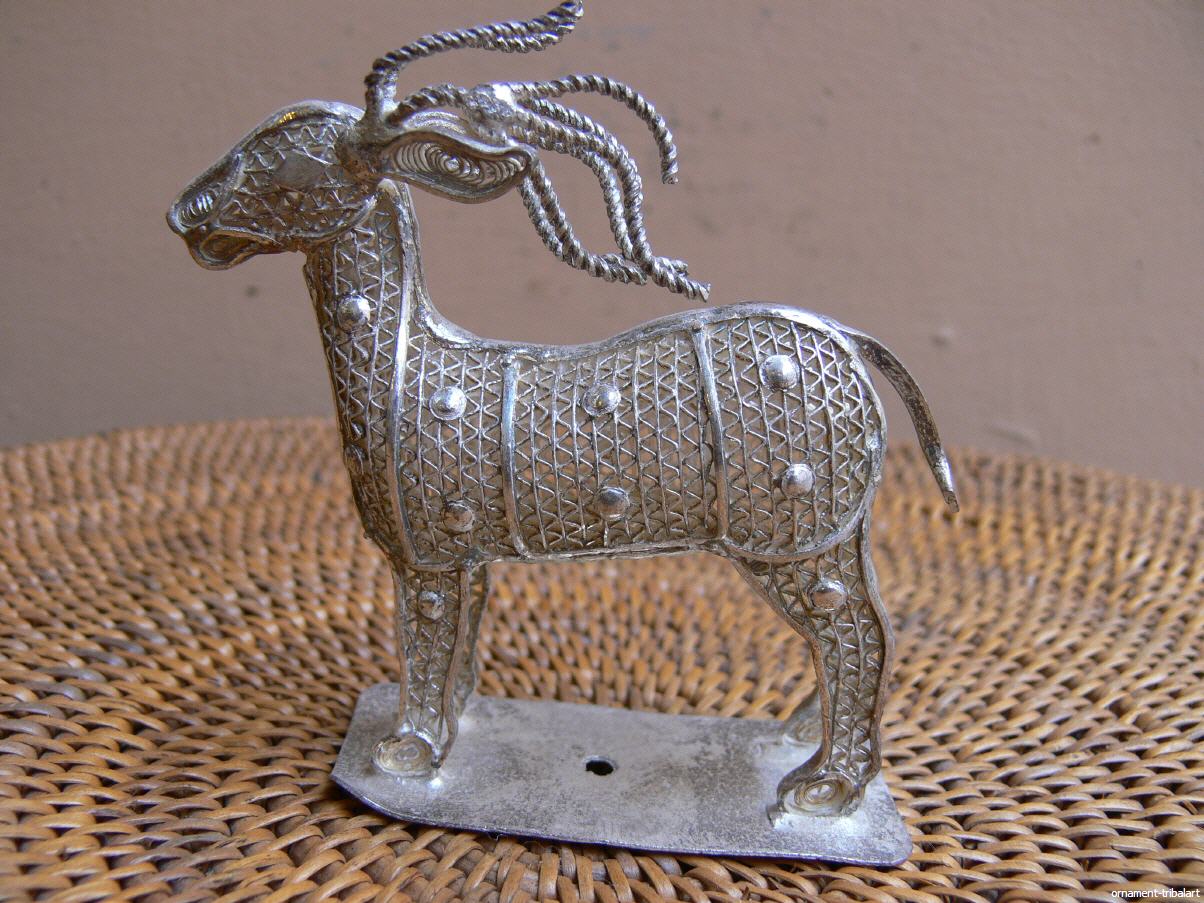 aus Orissa, Hirsch, Silber, Filigranarbeit, Höhe 7,3cm, Länge 7,5cm, Tiefe 3,7cm