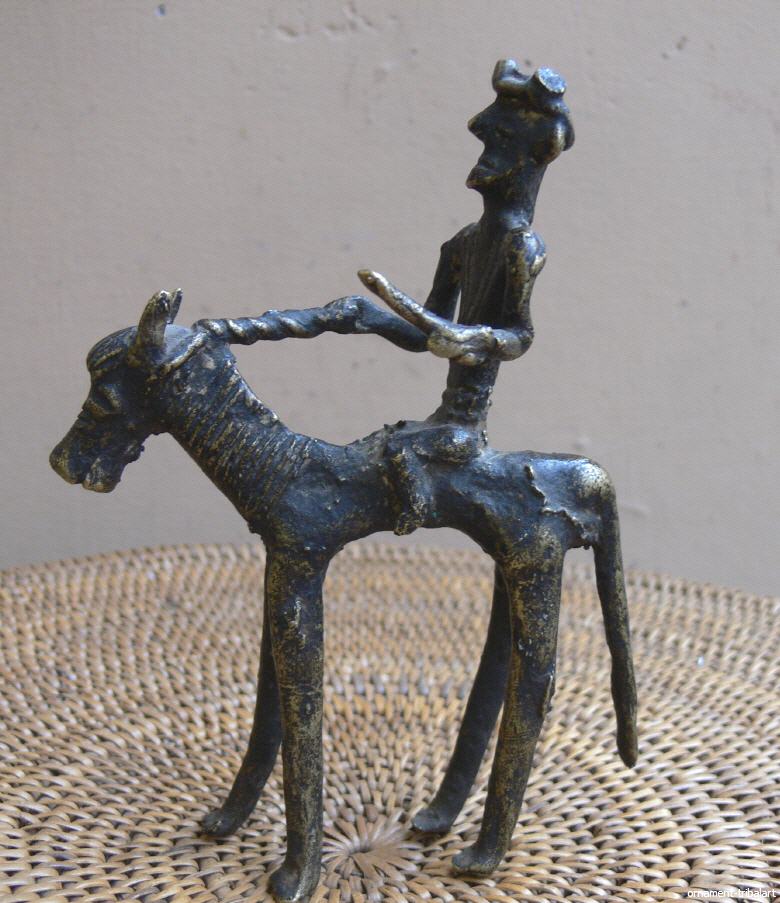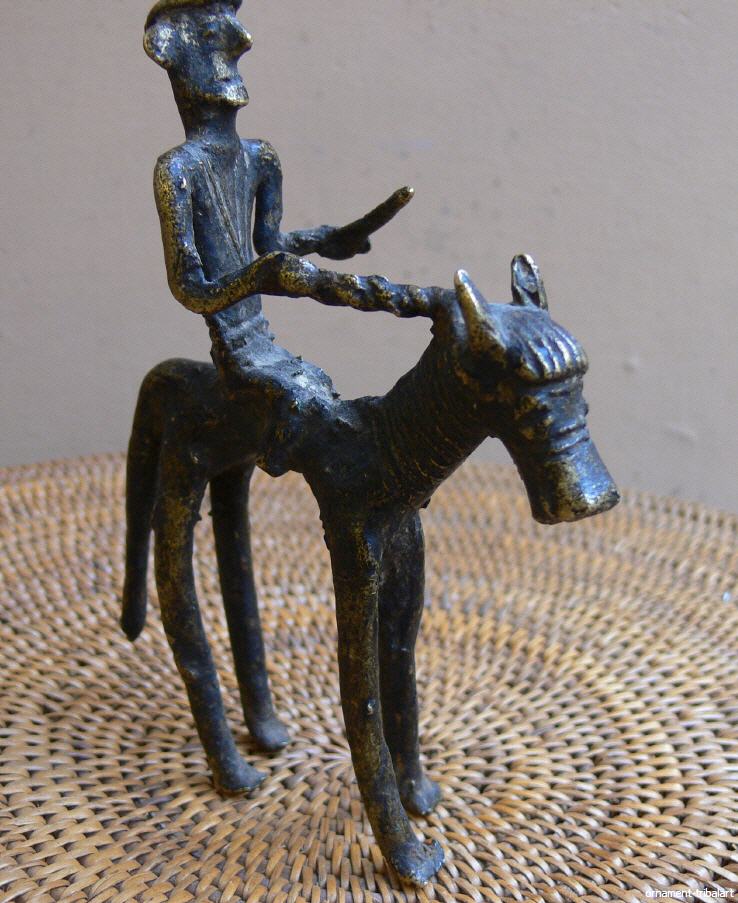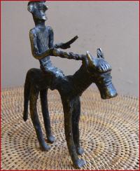 Reiterfigur, alt, Gelbguss, verlorene Form, Höhe 13cm, Länge 9,5cm