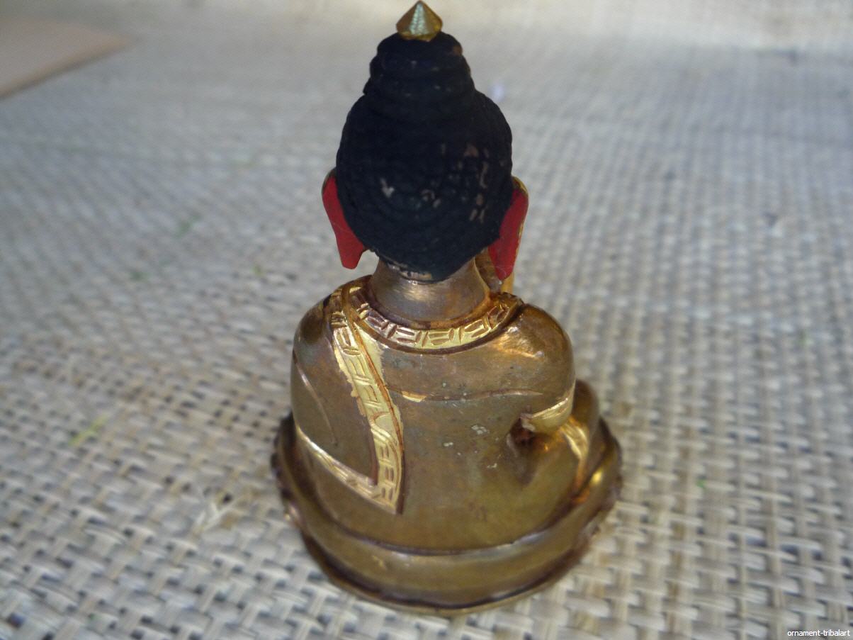 Buddhafigur, verlorene Form, Kupfer mit Goldauflage, Kopf handbemalt, Höhe 8.1cm Breite 5,2cm Tiefe 3,4cm