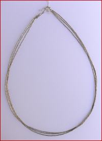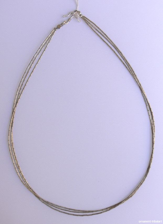 950 Silber , unpoliert , 3-reihig , sehr feine Röhrchen , Handarbeit der Karen , auf Stahlseide , Länge 44 cm