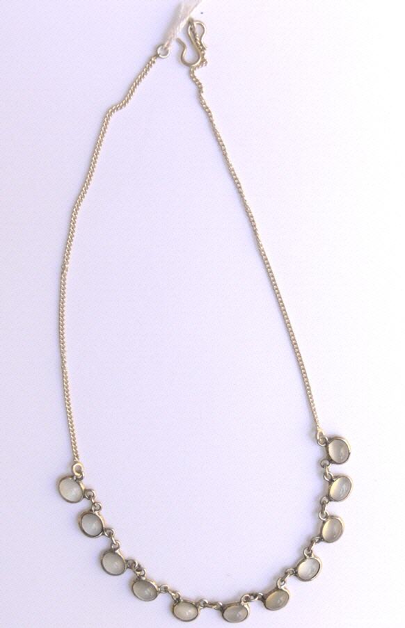 Mondstein , 11 Steine , Cabochonschliff , 925 Silber , Länge 41 cm , Höhe 0,9 cm