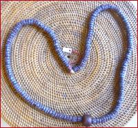 aus handgearbeiteten Glasperlen , Durchmesser außer Mittelperle ca. 1 cm , Länge 76 cm