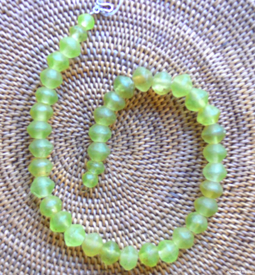 aus altem böhmischem Glas , Silberverschluss , Re-Import aus Afrika , Durchmesser 1 - 1,7 cm , Länge 48,5 cm
