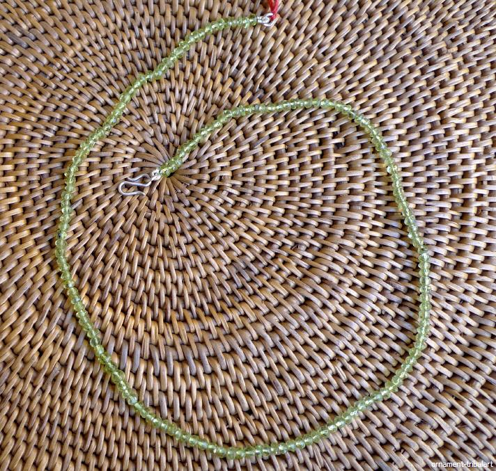 aus Peridot (Olivin) , fein facettiert, Länge 42,8 cm, Stärke ca. 3 mm