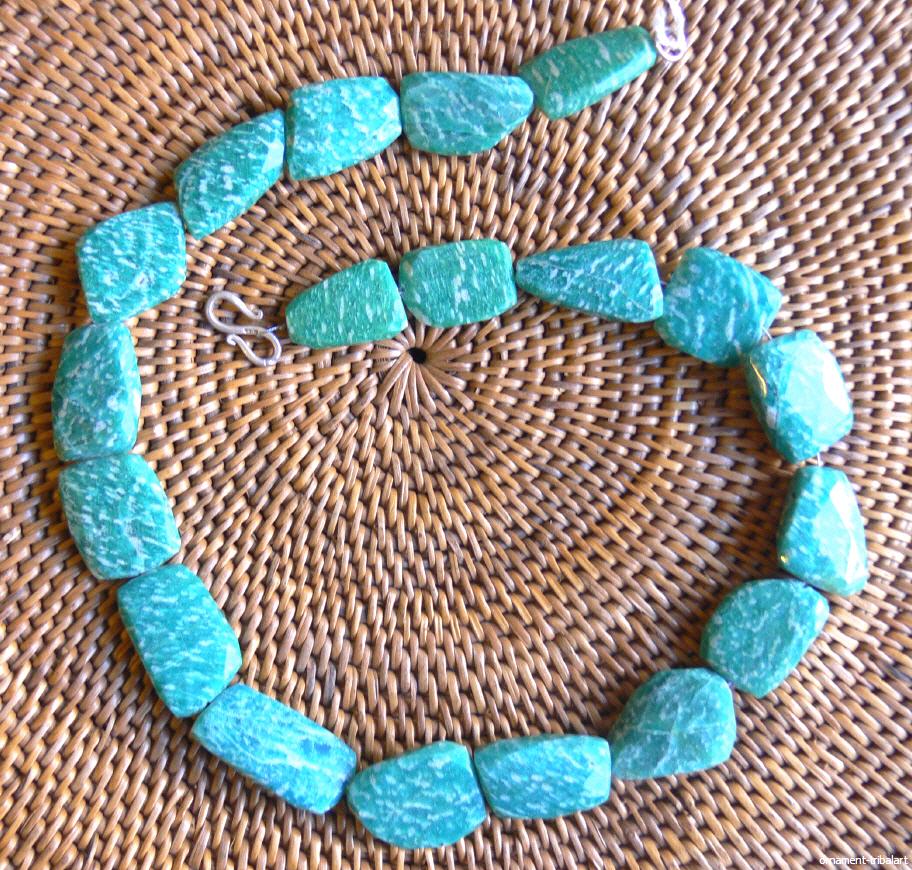 aus Amazonit , getrommelt u. leicht facettiert , Silberverschluss , Stärke ca. 1,1 -1,8 cm , Länge 51 cm
