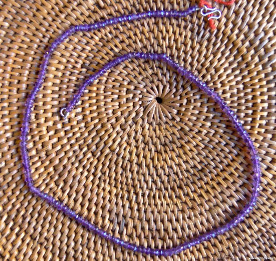 aus Ametyst , fein facettiert , Silberverschluss , Stärke ca. 0,3 cm , Länge 44 , cm