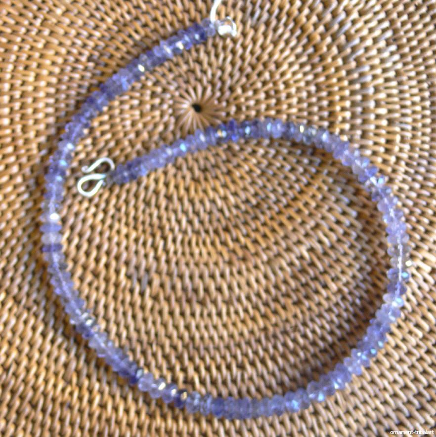 aus Iolith ( Wassersaphir ) , fein facettiert , Silberverschluss , Stärke ca. 0,25 cm , Länge 44 cm