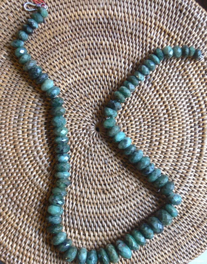aus Smaragd , facettiert , Silberverschluss , Stärke bis 1,7 cm , Länge 59 cm