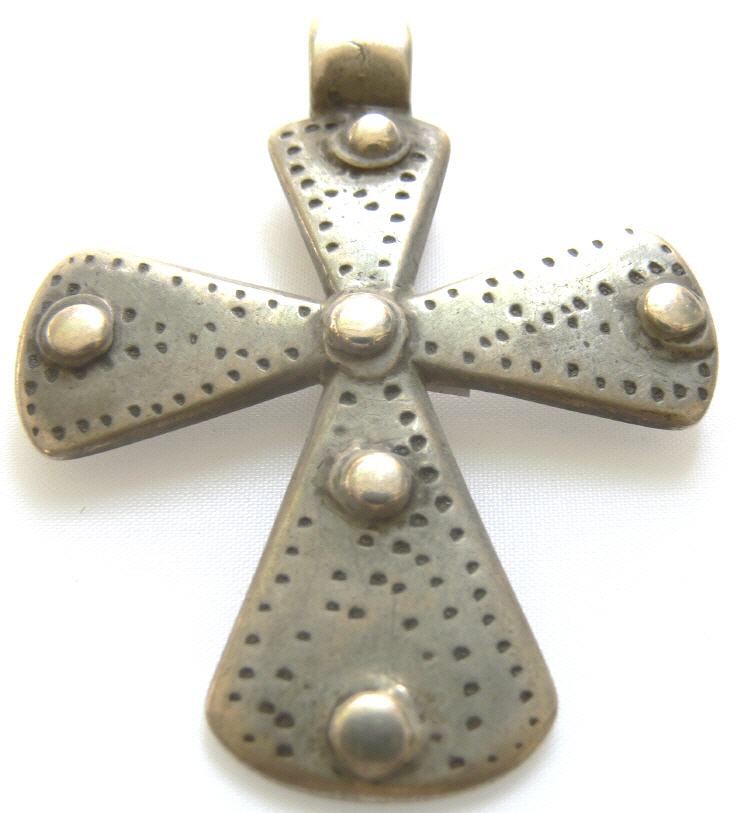 aus Silber , alt , verlorene Form , Christenkreuz , große Öse , Höhe 5,7 cm , Breite 4,3 cm