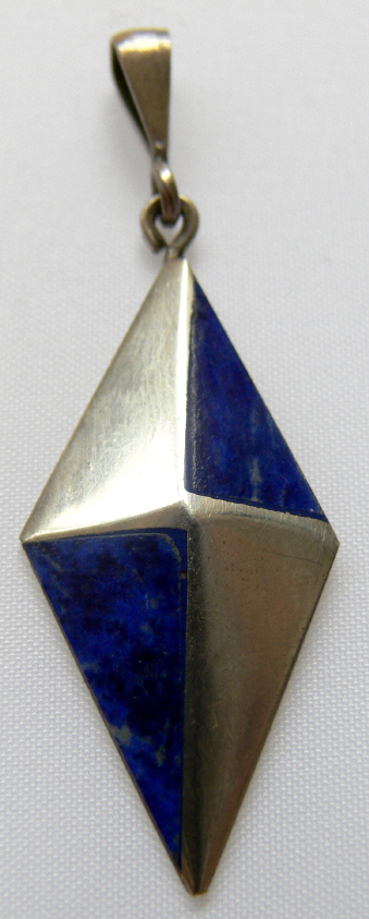 aus Lapis mit Silber , Höhe 4,6 cm , Breite 1,6 cm