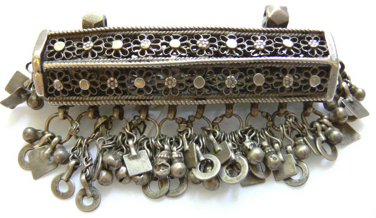 aus Silber , alt , Filigranarbeit , zum Öffnen , Wüste Thar , Länge 8 cm , Höhe mit Anhängern u. Ösen 5 cm