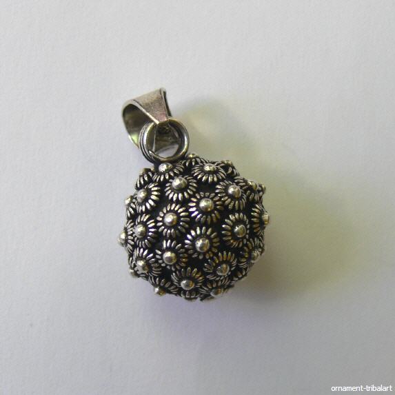 aus 925 Silber , aufwendige Granulatarbeit , große Öse , Durchmesser 14 mm , Höhe mit Öse 27 mm