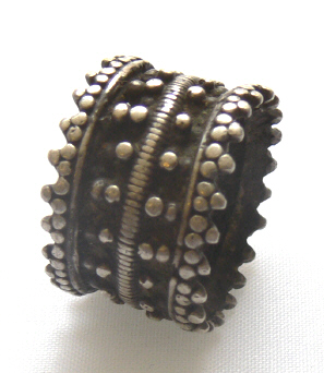 aus Silber , alt , Granulatarbeit , jüdisch , Breite 1,4 cm , Durchmesser 1,8 cm