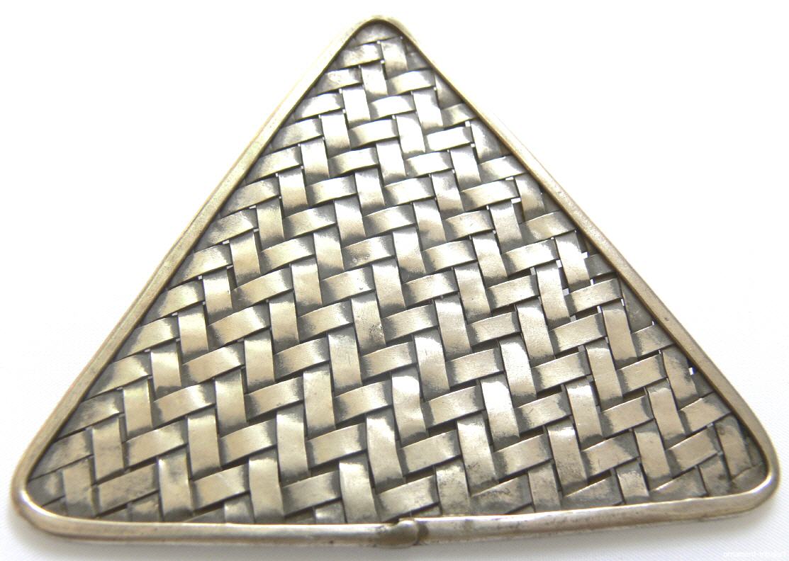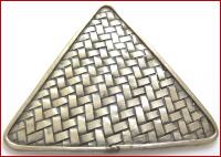 in 990 Silber unpoliert , Handarbeit der Karen , Öse hinten angelötet , Flachdrahtflechtung mit Rahmen , Breite 7,3, Höhe 6,3 cm