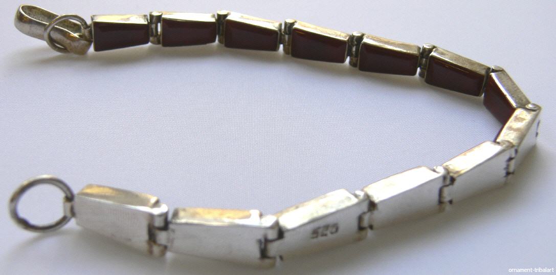 aus 925 Silber , mit Karneolsteinen , Handarbeit , Länge 21 cm , Breite 0,7 cm , Höhe 0,4 cm
