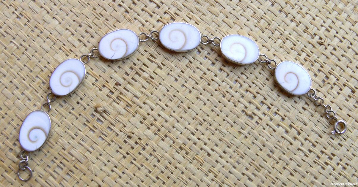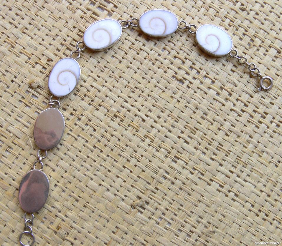 aus 925 Silber , mit Muschel , Handarbeit , Länge 19,7 cm , Breite 1,35 cm , Höhe 0,3 cm