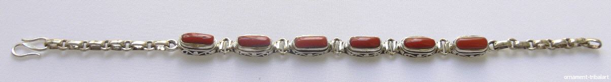 aus 925 Silber , mit echter Koralle , Cabochonschliff , Handarbeit , Länge 19 cm , Breite 0,6 cm , Höhe 0,6 cm