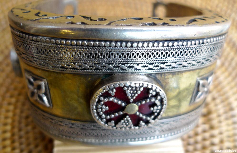 teils feuervergoldet, kasachisch, sehr feine Arbeit, älter, Öffnung 4 cm, Durchmesser 6,7 cm, Breite des Reifs 4,3 cm