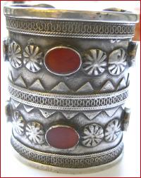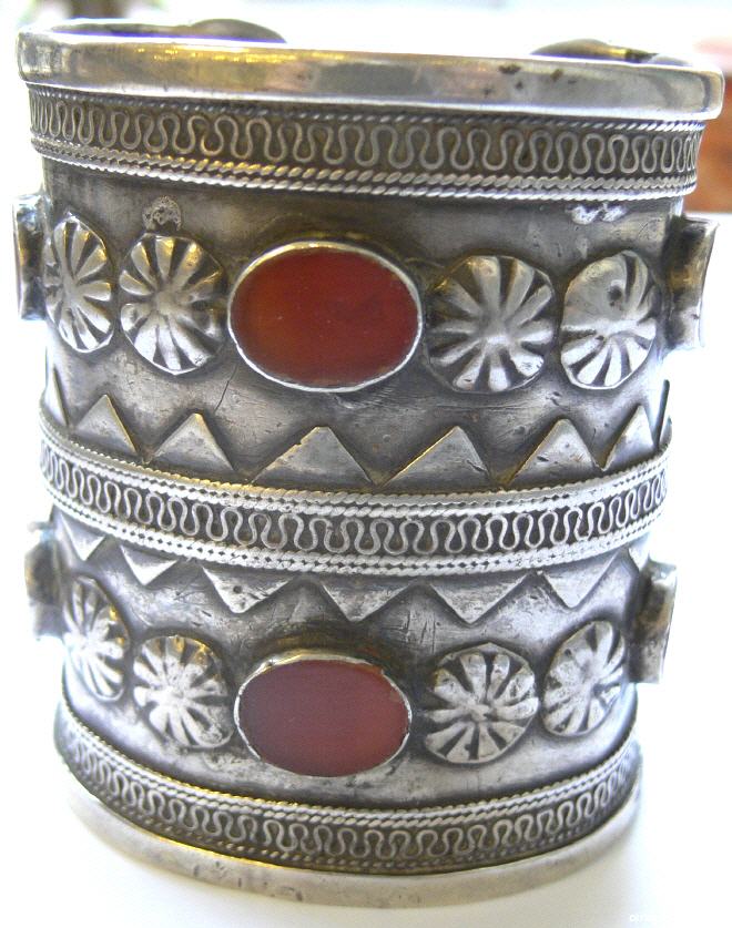 der Turkmenen , Silber , mit Karneolen , altes Stück , Öffnung 2,4 cm , Breite 7,8 cm , Umfang außen 17,1 cm , biegbar