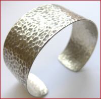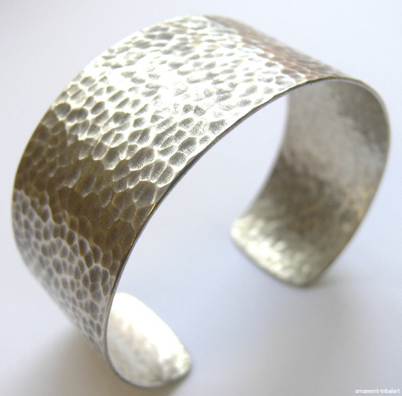 der Karen , 950 Silber unpoliert , Breite 2,8 cm , kann an den Arm durch Biegen angepasst werden
