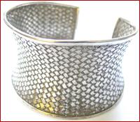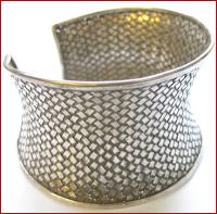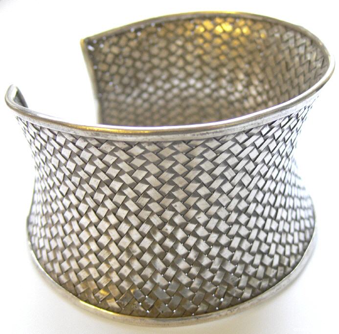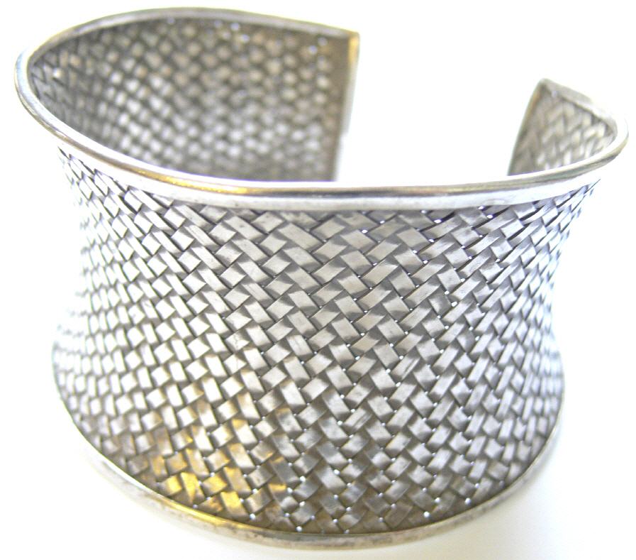 der Karen , 950 Silber unpoliert , Breite 4,6 cm , Flachdrahtflechtung mit Rahmen , kann an den Arm durch Biegen angepasst werden