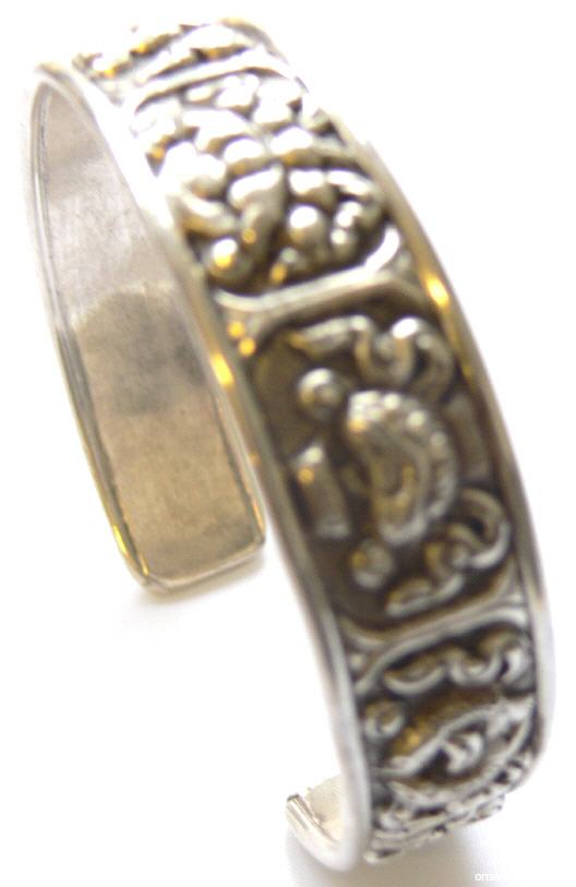 aus 925 Silber , biegbar , tibetische Handarbeit , Motiv 8 tibetische Glückszeichen , Umfang ca. 17,7 cm , Breite 1,5 cm