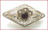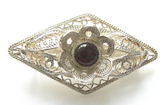 aus 925 Silber mit Granat , Filigranarbeit , Länge 4,2 cm , Breite 2,4 cm , Höhe ca. ca. 1,2 cm