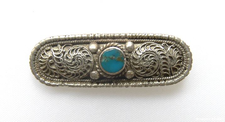 aus 925 Silber , Filigranarbeit der Newar , Türkis , Länge 3,2 cm , Höhe 1,1 cm