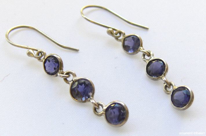aus 925 Silber u. Iolith ( Wassersaphir ) , Facettenschliff , Länge 4 cm , Breite 0,5 cm