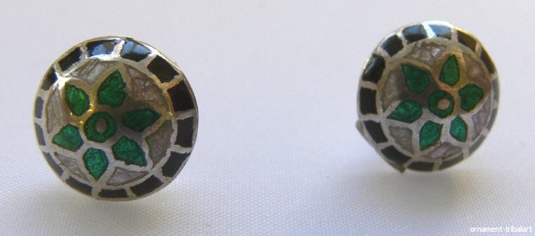 aus 925 Silber emailliert , Durchmesser 1,2 cm , Höhe 0,4 cm