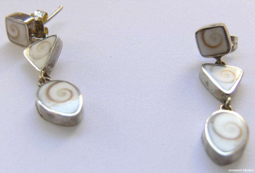 aus 925 Silber mit Muschelschnecke , Stecker , Höhe 3,5 cm , Breite 0,8 cm , Tiefe 0,4 cm