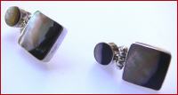 aus 925 Silber mit Perlmutt , leicht rosa u. schwarz , Stecker , Höhe 2,6 cm , Breite 1,4 cm , Tiefe 0,4 cm