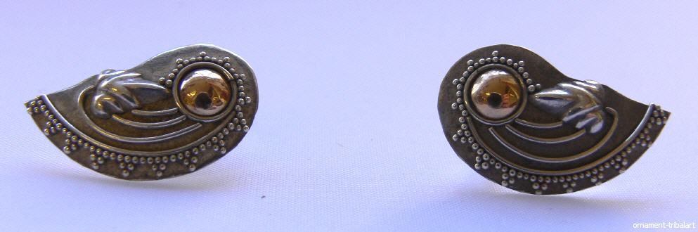 aus 925 Silber mit Gold , Stecker , aufwendige Granulatarbeit , Höhe 2,4 cm , Breite 1,2