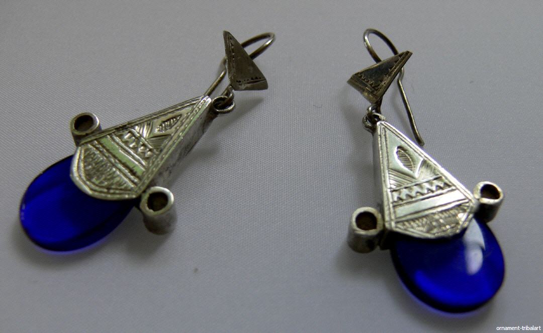 der Tuareg , Kel Air , 950 Silber , ziseliert ,Böhmisches Glas , Länge 5cm , Breite 2 cm , Tiefe 0,4 cm