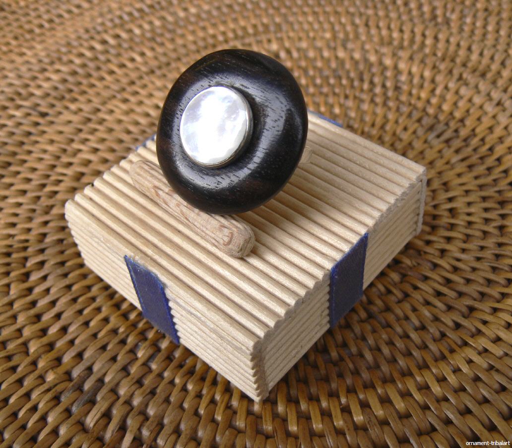 Sterling Silber , Muschel u. Holz , Handarbeit , Durchmesser 17,75 mm , Breite 31 mm , Höhe 7 mm , verstellbar