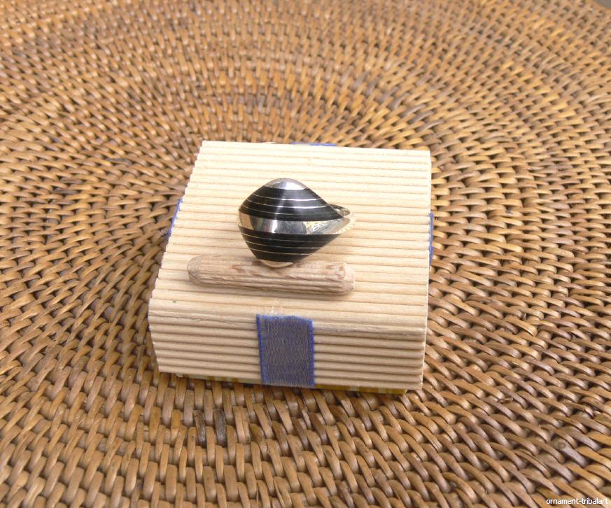der Tuareg , 950 Silber , Ebenholzeinlage , Handarbeit , Durchmesser 18,75 mm , Breite 16 mm , Höhe 16 mm