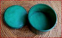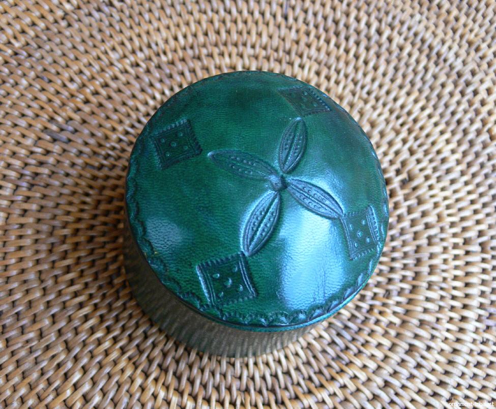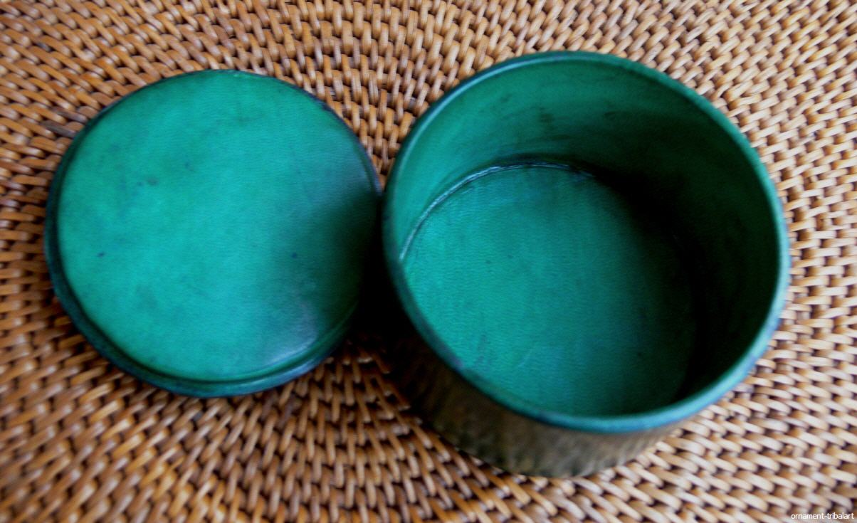 der Tuareg, Ziegenleder auf Holz, gefärbt und punziert,Höhe 5cm, Durchmesser 6,4cm